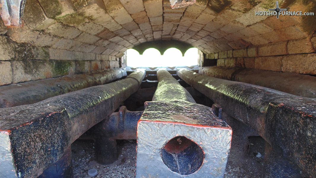 The pretty darned clean inside of the Castillo's hot shot furnace. As a feature of one of America's most-visited tourist attractions, this shot furnace probably gets more maintenence attention than any other. Someone actually had to lean all the way into that furnace and paint those iron rails! |