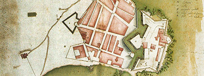 An early plan of the Citadelle d'Ajaccio, including a whole lot of extra stuff that is not there today. |