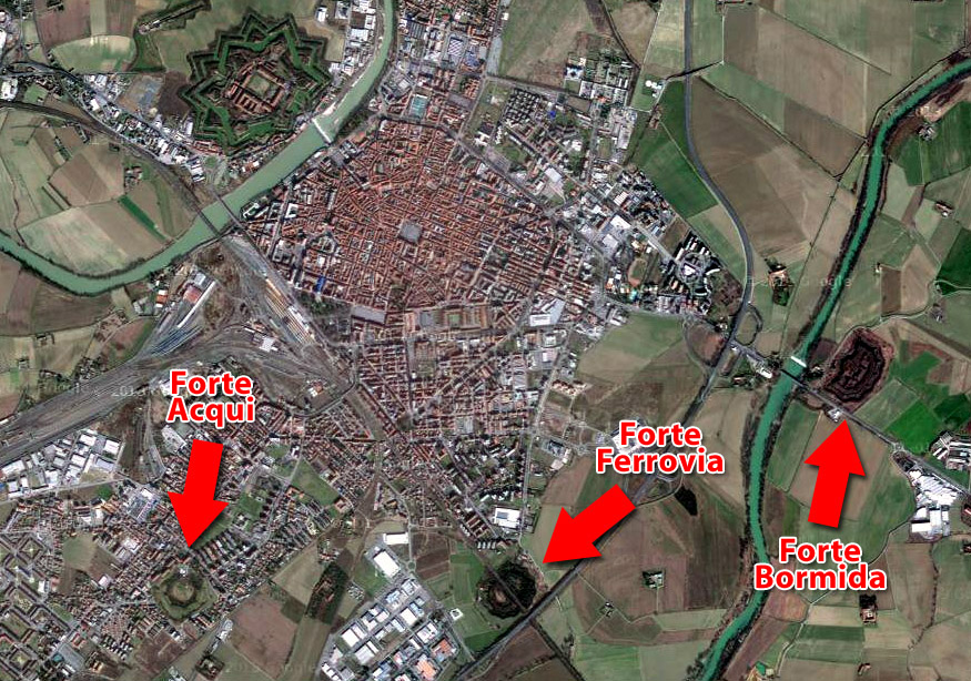 I say "at least two forts" because, as one can plainly see, there is in fact a third little fort a wee bit to the east of Alessandria as well.