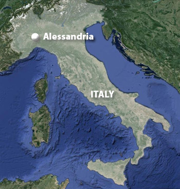 The city of Alessandria sits at the confluence of the Tarano and Bormidia di Spigno rivers in northwestern Italy. Founded in 1168, it was sited strategically amidst a number of eternally warring city-states, and came into existence as a stronghold for the Lombard League,  an alliance formed in 1167 to fight the Holy Roman Empire's attempts to exert influence in northern Italy.