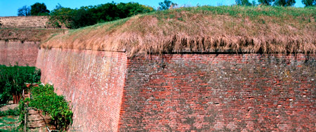 Forte Acqui and Forte Ferrovia were most certainly built by the French during their stay in Alessandria. Though their shape is by no means that of the classic starfort, they're semicircular forts with small bastions poking out at strategic intervals: Just the thing to dissuade all but the strongest of attacking forces.