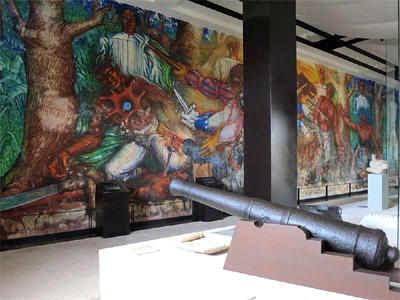 Inside the museum at el Fuerte de San Felipe de Bacalar today: Elio Carmichael's mural. |