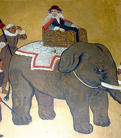 Portuguese mercenary Filipe de Brito e Nicote, in his carefree pre-impalement days. And a charming elephant that one hopes was not also impaled. Because no elephant chooses to have guys ride around on its back. |