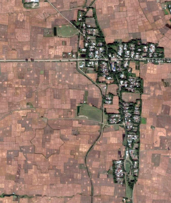 The wee townlet of Maklang, and Bihu Loukon. You might need to squint to see it! |