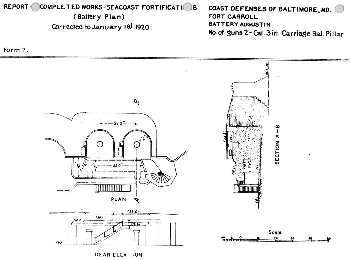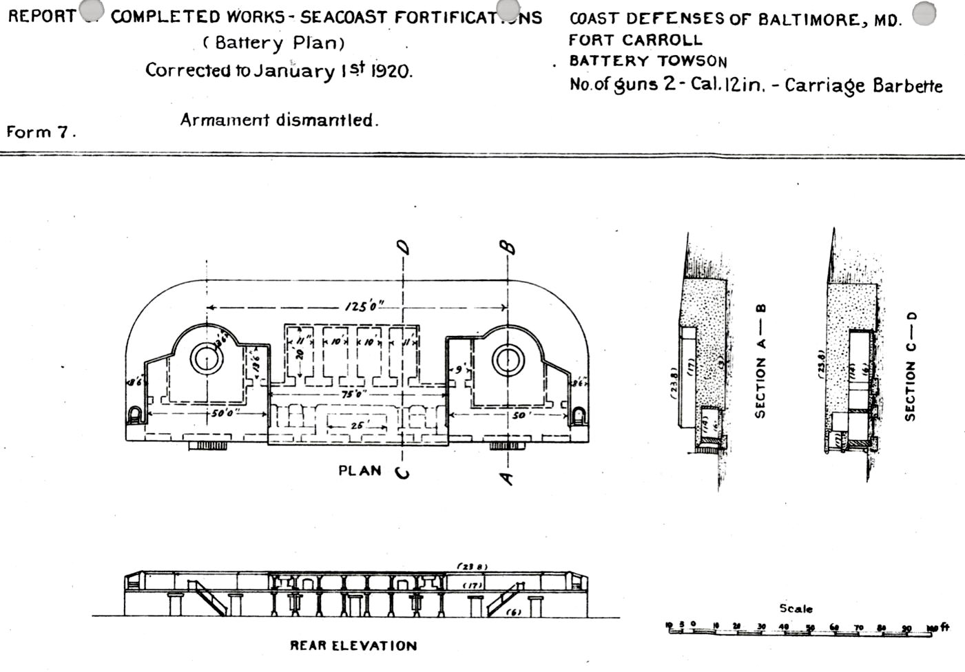 A more or less standard Endicott Battery, completed in 1891: Battery Decatur, at Fort Washington, on the Potomac just south of Washington, DC. What does Battery Decatur have to do with Fort Carroll? Nothing, I'm just trying to illustrate the Endicott Period in one image here, please use your imagination. |