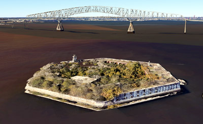 Fort Carroll from the southeast, with the majestic Francis Scott Key Bridge serving as the backdrop. As always, all hail Google Earth. |