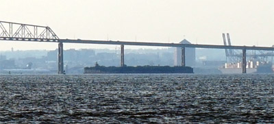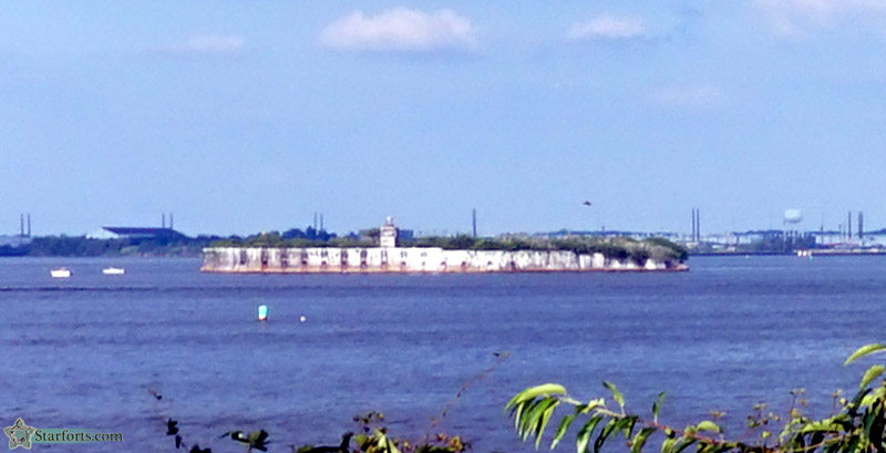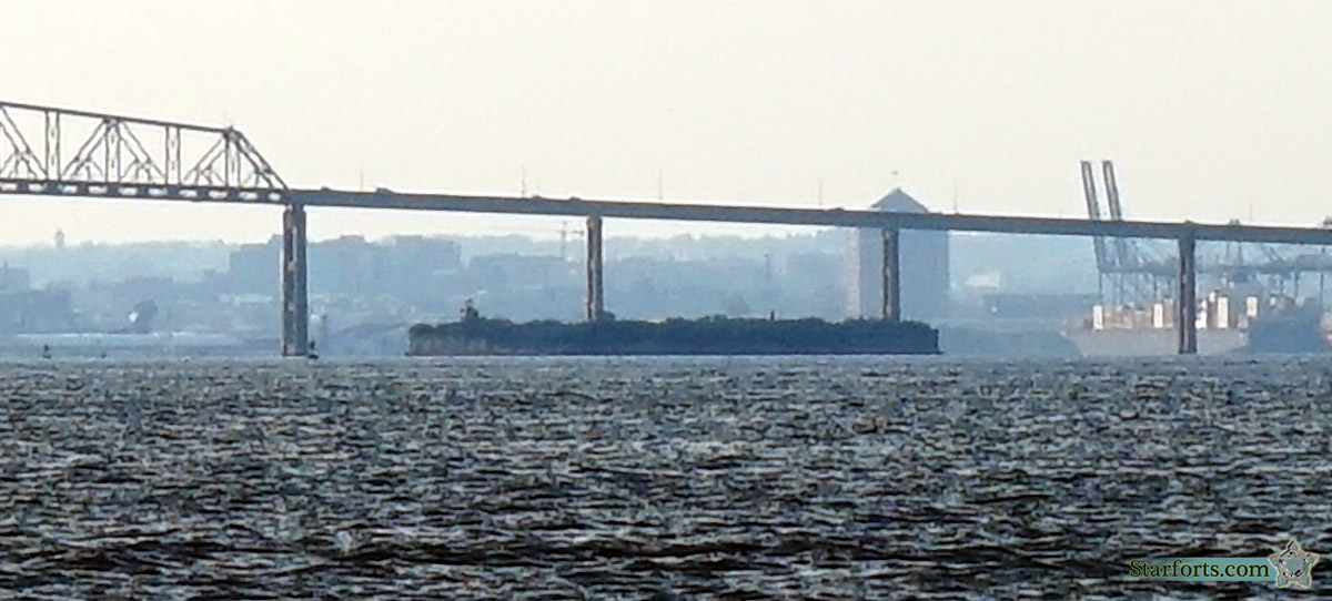 Fort Carroll in May of 2014, taken whilst motoring in a most motorious fashion o'er the Francis Scott Key Bridge. |