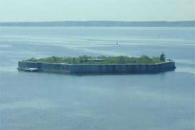 As originally designed, the Fort at Sollers' Point Flats was to be a fearsome three- (or maybe four-) tiered hexagon, mounting 225 guns. Many of the American coastal forts whose construction was initiated in this period were intended to be multi-tiered affairs, but finances, Congressional mamby-pambyness and ultimately the approach of the US Civil War (1861-1865) left the vast majority of these many-tiered monstrosities with only an embarassing one or two tiers upon their completion: Fort Richmond and Castle Williams in New York City, and Fort Point in San Francisco were the only three American forts to reach their originally-imagined multi-tiered ideal. |