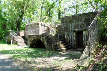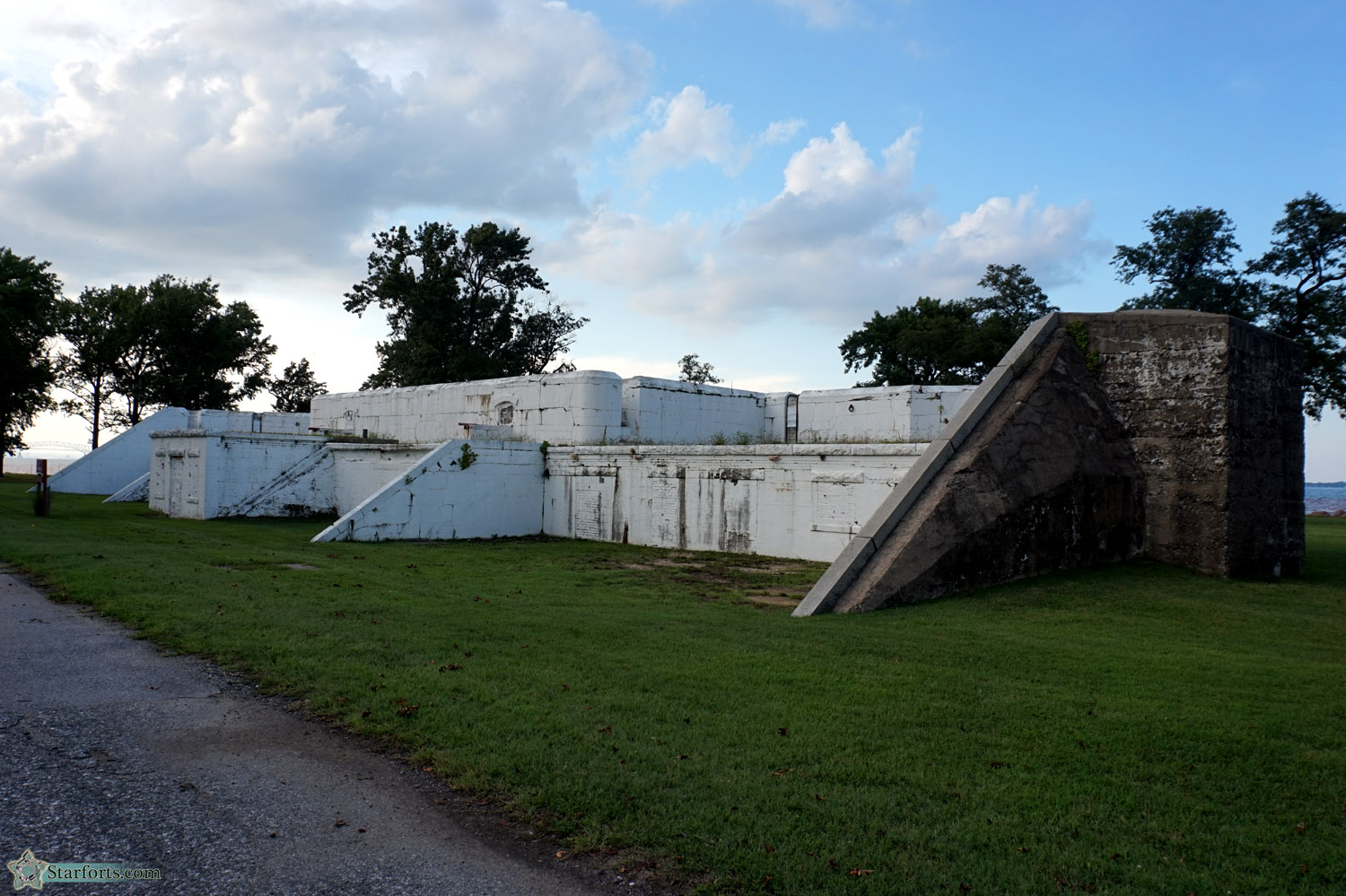 Fort Armistead was named for George Armistead (1780-1818), who as a Major commanded Baltimore's famed Fort McHenry when the British came a-callin' in September of 1814. Armistead's other starfort credentials? He served as an artillery officer at Fort Niagara at the mouth of the Niagara River in 1813, where he participated in the capture of Fort George... and he served a brief period as the commander of Fort Adams in Newport, Rhode Island after the War of 1812 (1812-1815). Ole George certainly deserved to have some important stuff named after him, and the Fort Armistead that was built from 1898 to 1900 on Hawkins Point, to Fort Carroll's immediate southwest, had four batteries with armament ranging from the ubiquitous 3" quick-firing guns to a 12" disappearing gun at Battery Winchester, which is the only of Fort Armistead's batteries to have survived into the 21st century.