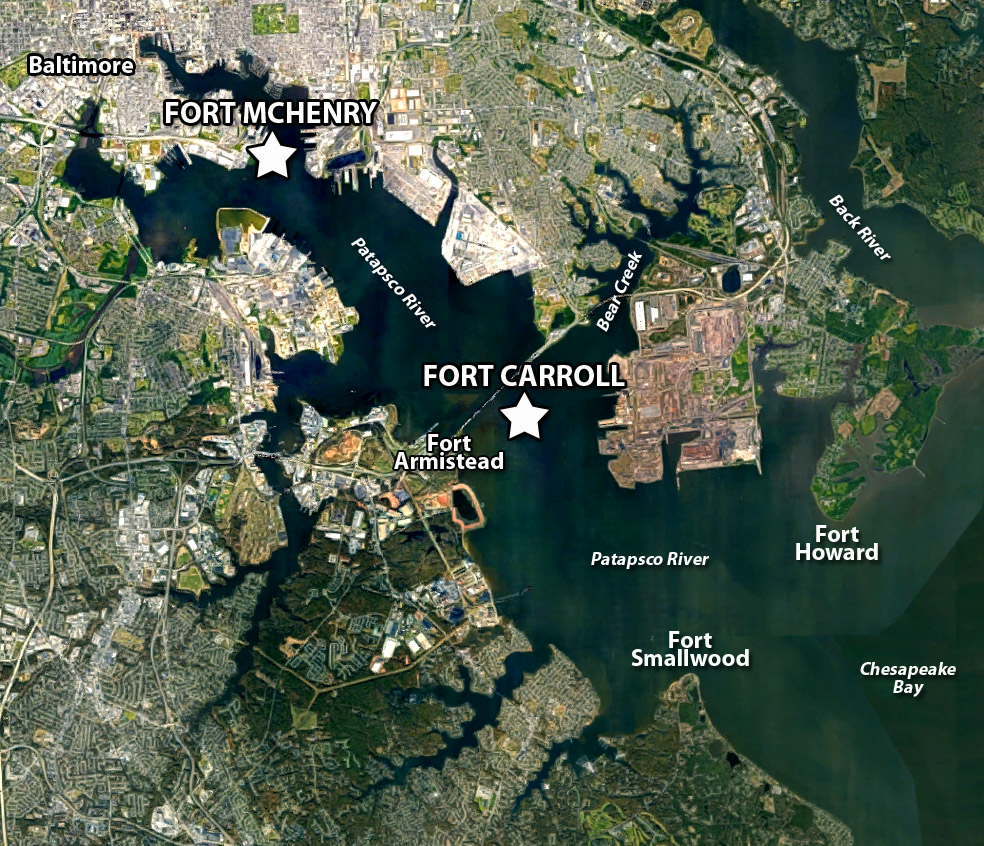 Rewind, Captain Brewerton finally put the finishing touches on Fort Carroll (more or less) in 1857. The usual pattern of events upon the completion of a major American fortification was, absent an obvious, immediate threat, a gun or two would be mounted for form's sake, but the major investment of fully arming said fort didn't seem necessary. This was likely the case with Fort Carroll, though with the secession of eleven southern states from the Union at the beginning of 1861 and subsequent declaration of war, an immediate threat was belatedly perceived, and around 30 guns were mounted at Fort Carroll to defend Baltimore from the inevitable amphibious landing by the Confederate Navy. Maryland was a slave state at the outset of this conflict, and Baltimore likely would have stood with the Confederacy had the Federal Government not swiftly and wisely occupied it. Unlikely to be called into duty to defend the city (and more likely to need to defend itself from the city), Fort McHenry was utilized as a handy, secure facility in which to imprison those with a sympathy for the southern cause, including such dodgy characters as both the Mayor and Police Commissioner of Baltimore and Frank Key Howard (1826-1872), grandson of Francis Scott Key (1779-1843), whose poem about the British bombardment of Fort McHenry in 1814 became the United States' national anthem. Absolutely lock that guy up! These prisoners were forced to skootch over some to make room for all of Fort Carroll's powder and shot in 1864, when torrential rains flooded our poor, beleaguered fort's magazines, and everything that was needed to make its guns go bang was sent to Fort McHenry. Had Frank Key Howard (who had been arrested for writing an editorial in Baltimore's Daily Exchange that was critical of US President Abraham Lincoln (1809-1865)'s suspension of habeas corpus in Maryland, which made it possible for the government to imprison whomsoever it pleased without charge) been able to escape and deliver the news of Fort Carroll's sudden impotency to Richmond, surely Baltimore would have been immediately captured and we'd all be speaking with a southern accent right now*. |