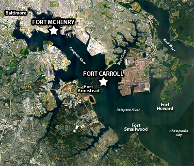 ...but had Baltimore been declawed? Not really, because at the same time that Fort Carroll was receiving its Endicottian upgrade, three new entities were being constructed along the lower banks of the Patapsco: Fort Howard, Fort Smallwood and Fort Armistead, all of which bristled with the most modern armaments that end-of-the-19th-century America could devise. |