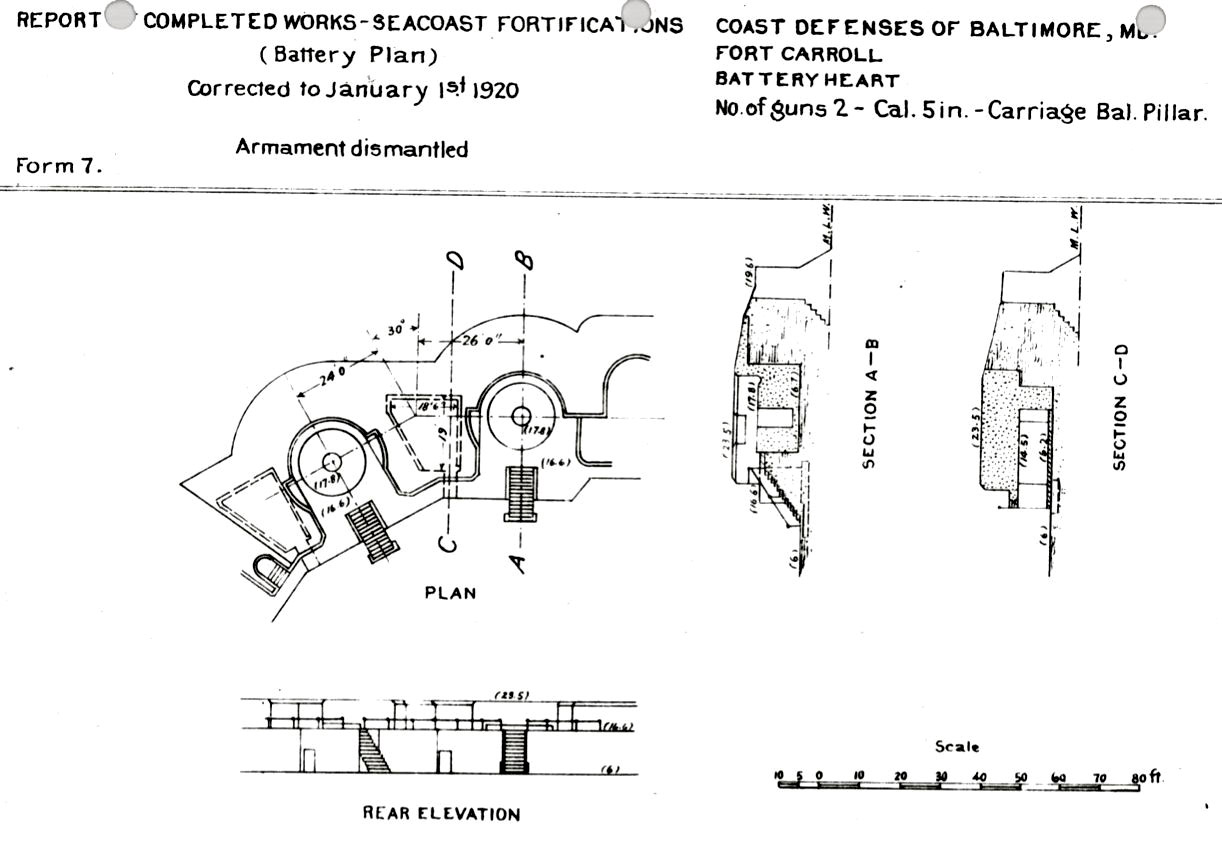 From a secret 1921 plan of Fort Carroll, featuring its Endicott Batteries. Click on it to see the whole plan, after which I'll have to ask you to turn yourself in to the authorities of a neutral nation, where you will be interned until the cessation of hostilities. Thx to FortWiki.com for the image! |