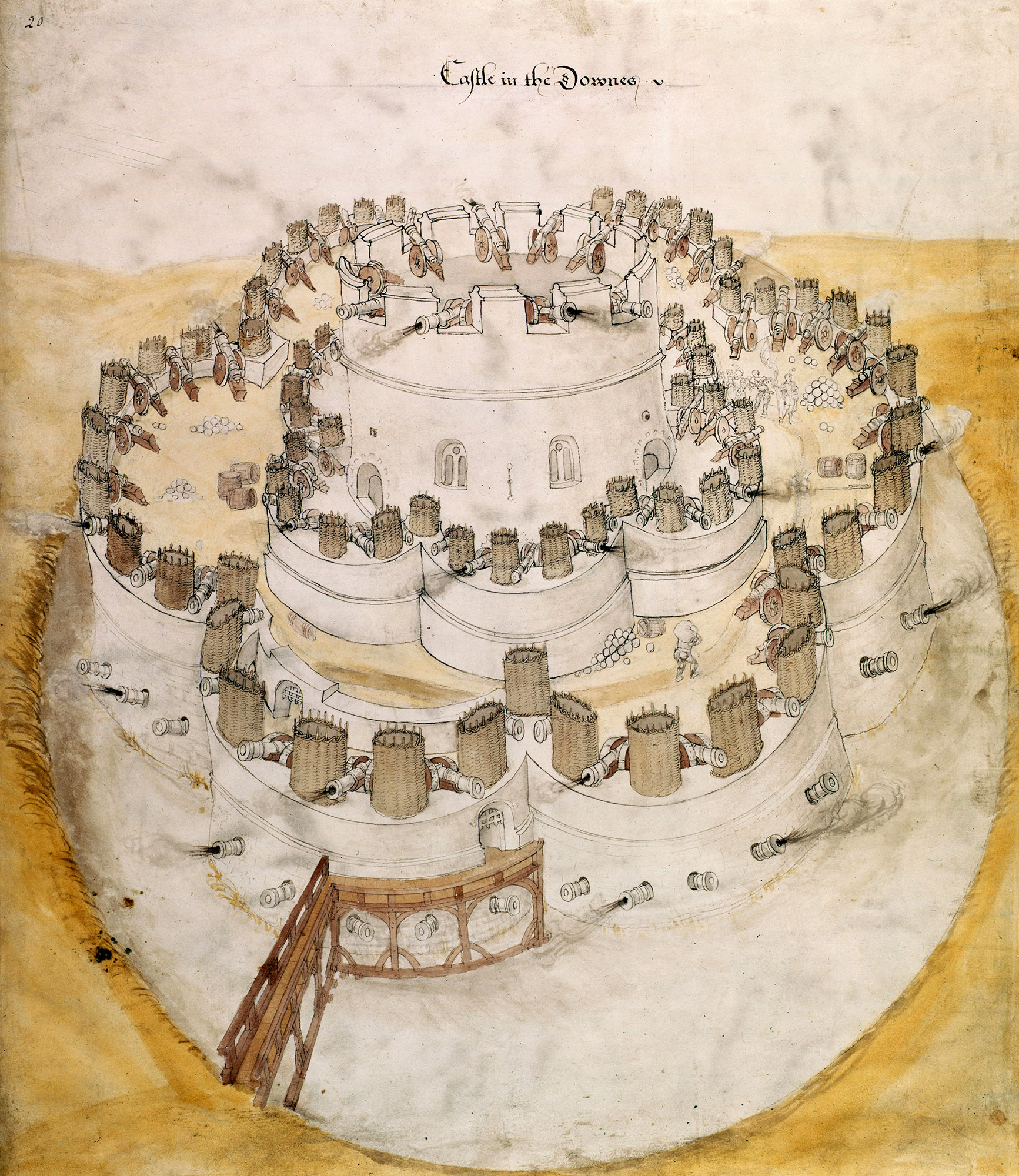 One of the results of Henry separating England from the Catholic church was the immediate enmity of France and Spain. It seemed clear that either or both would imminently be landing on England's shores in order to return the English to the Catholic fold by stabbing all of them to death...but in addition to their many and varied blades, the armies of those angry Catholic kingdoms would be coming with artillery.