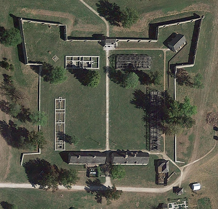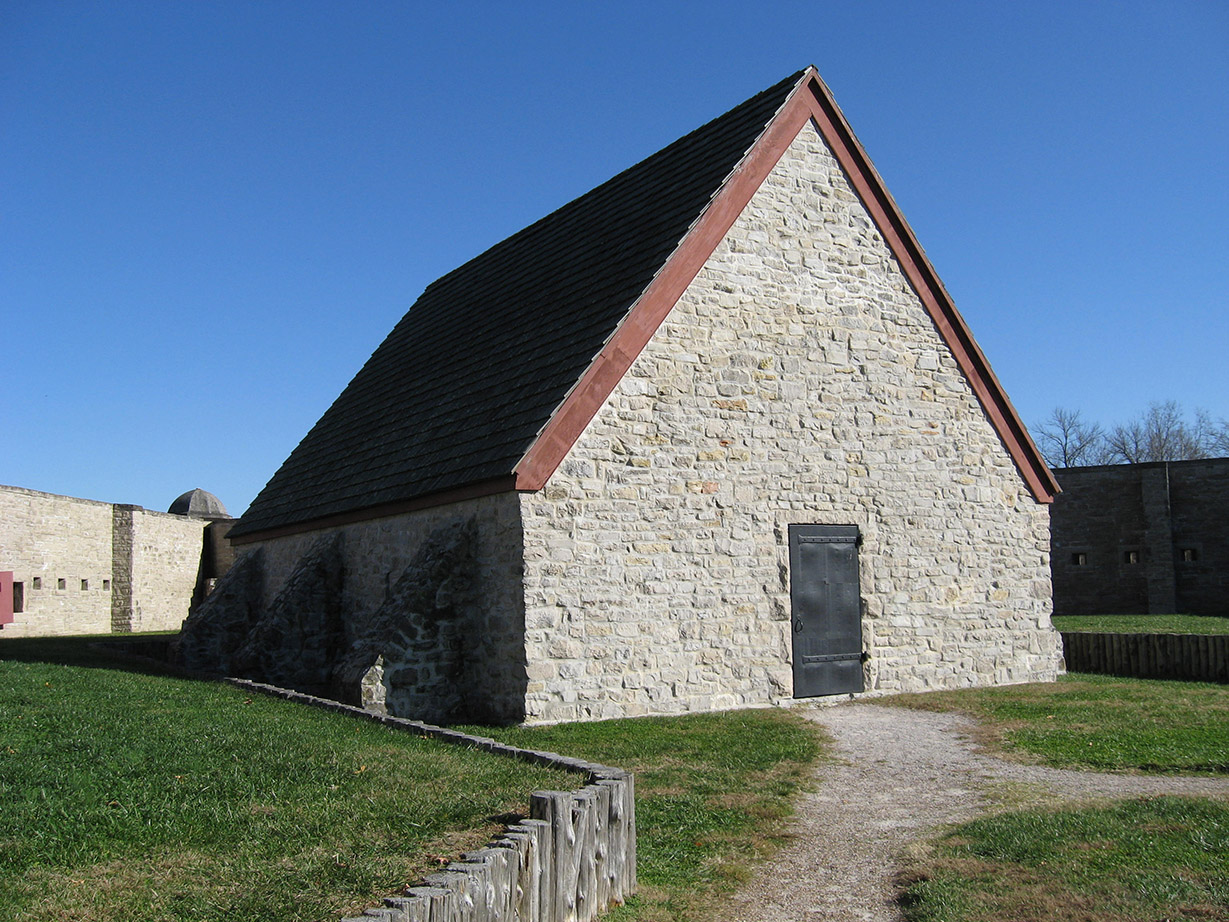 By 1900 the walls of Fort de Chartres were gone, their stones integrated into the buildings of the nearby town of Prairie du Rocher. The only clue that a glorious starfort had once existed there were the remains of the Powder Magazine, whose stones were assumedly too difficult for the thieving townsfolk to cart away.