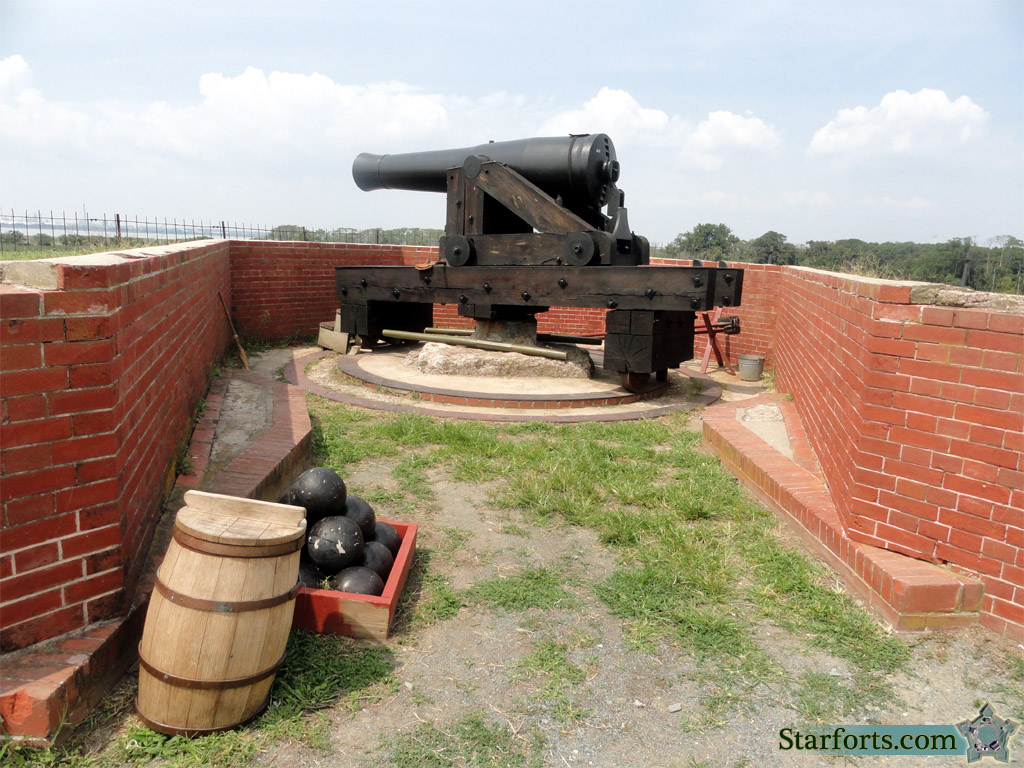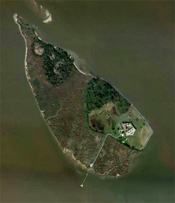 Today, visitors can reach Pea Patch Island by ferry. Daily activities include folks in Civil War period dress, bustling around and doing Civil War period things, and there is a daily firing of an 8 inch Columbiad gun. In the second week of June each year, there is an "Escape from Fort Delaware" triathalon, in which competitors leap into the river while being fired upon by muskets (or maybe that musket shot just starts the race), swim to the shore and run and ride bikes to the town green in Delaware City: This to commemorate some 52 Confederate escapees during the Civil War. Or if not to commemorate, to at least follow in the armstrokes and footsteps of. Any Civil War-era prison is bound to have plenty of ghosts inhabiting its passageways (at least they're there if you really want them to be), so "Paranormal Tours" are also available at Fort Delaware. Both US and British television have aired shows regarding the supposed paranormal activity at Fort Delaware in recent years. I visited Fort Delaware in 2012! Please see the Fort Delaware page in our Starforts I've Visited section to peruse pix and read my impressions!