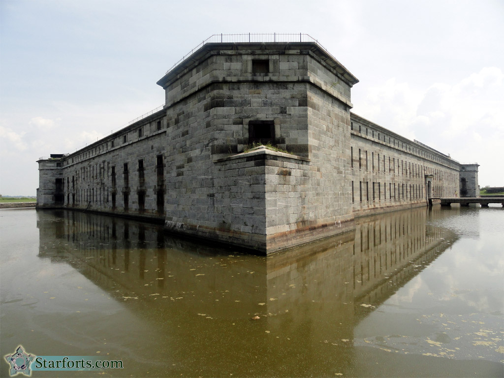 Construction on the first iteration of Fort Delaware began in early 1817, overseen by Chief Engineer Joseph Gardner Smith (1783-1865). The fort was to be built in the classic five-pointed star design that we know and love, progressed nicely and was mostly complete by 1823, but issues with Pea Patch Island's marshy environment delayed its completion for several years.