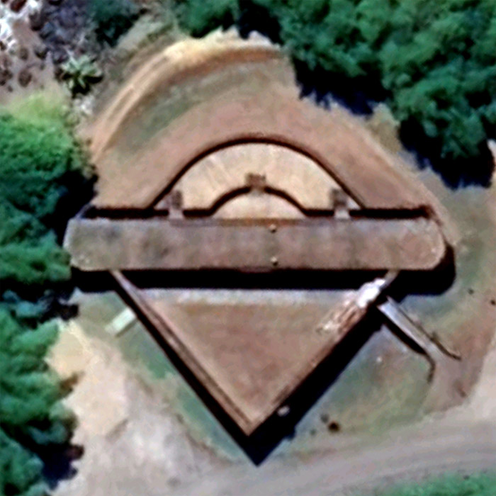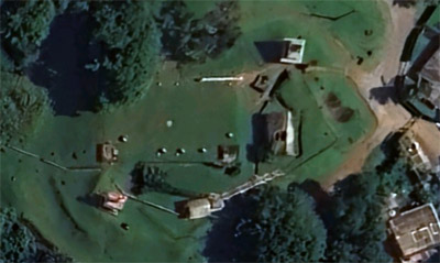 ...because it was actually rebuilt! The French began constructing a newer and better Fort Diamant in 1840, on the spot where the original once stood at the mouth of the Mahury River. A relatively simple affair that mounted three guns on an upper level, five on a lower level and what is essentially a loopholed redan pointing inland, this arrangement seems remeniscent of Fort Barrancas in Pensacola, Florida, with the rounded battery facing the water and angled work protecting the rear. Construction of this moated, basalt rubble and brick fort took nine years, once again owing to the difficulty of transporting building materials to the area. |
