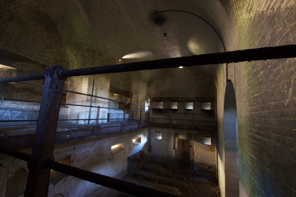 In the 1860's, Drop Redoubt received its four distinctive caponieres, which protruded into the dry moat, allowing for the efficient dispatch of any attacking party so foolish as to think leaping into a dry moat was a sensible thing to do. The naked barracks casemates and other structures within the fort's walls were also covered with earth for added protection against artillery, which certainly made me feel better at the time.