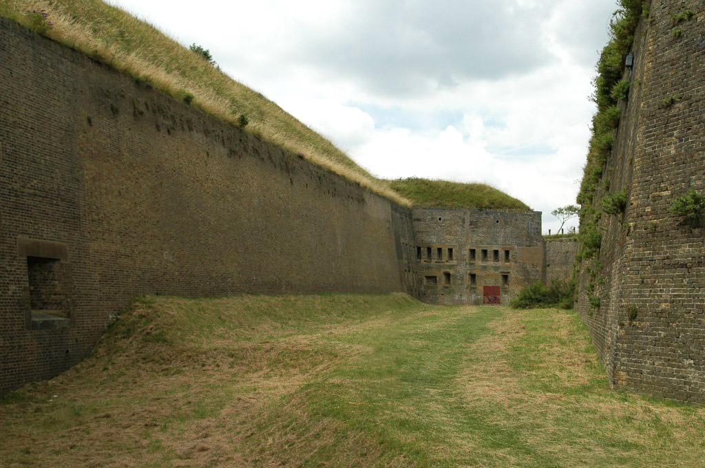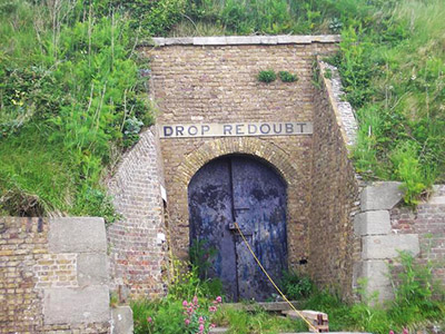 By the end of the Napoleonic Wars (1803-1815), Dover's Western Heights were armed with several defensive works. Napoleon (1769-1821) never got his invasion of Britain off the ground any more successfully than the previous generation of French folks, so Drop Redoubt remained untested.