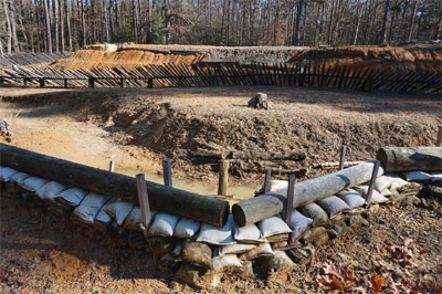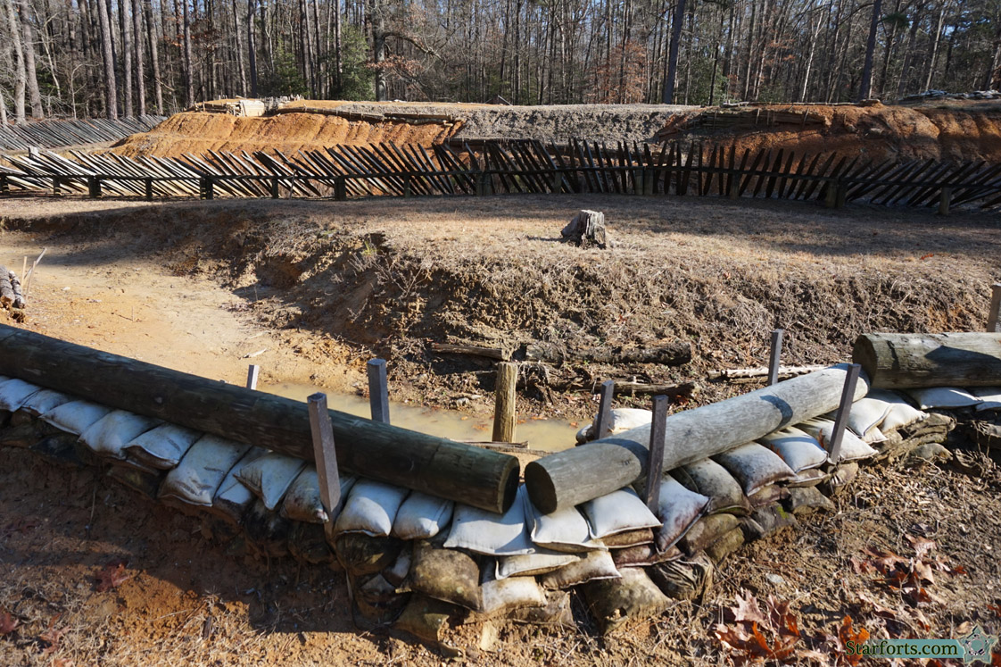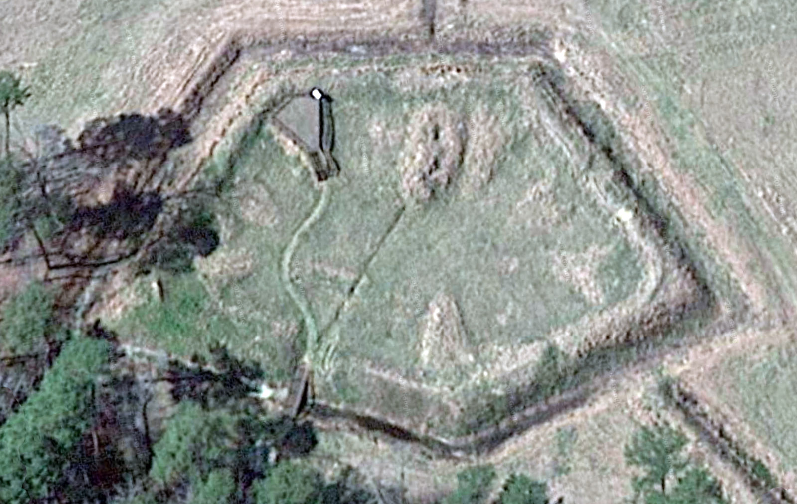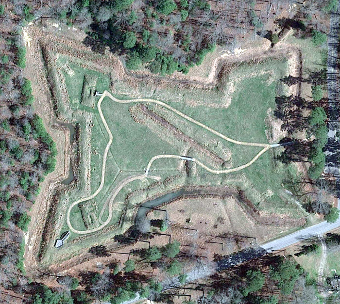 For the most part, permanent fortifications were not initiated in America during the US Civil War (1861-1865). The latest artillery proved more than a match for the masonry starfort early in that conflict, but the predominant fortification concept of the past 400 years had not been abandoned: Witness the stellar example of the starfortilogical art above! 1864, people! Admittedly, however, the fortifications discussed on this page are best identified as fieldworks.
