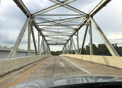 Heading west o'er the Apalachicola River in 2018, utilizing the Trammell Bridge on Route 20. Steering is difficult when one is obsessively watching one's phone to see if it will immediately CLICK back one hour! Hint: It did not. |
