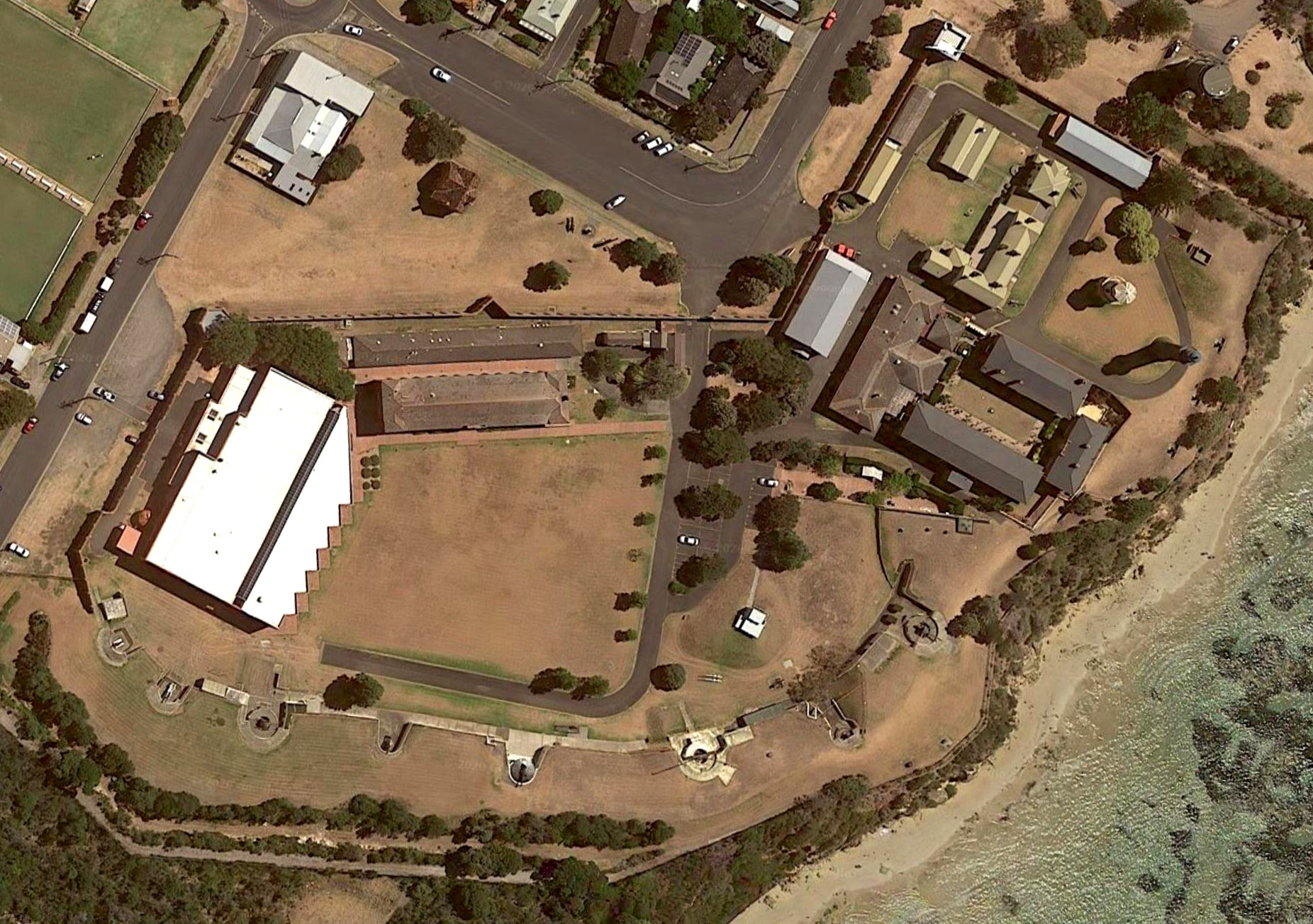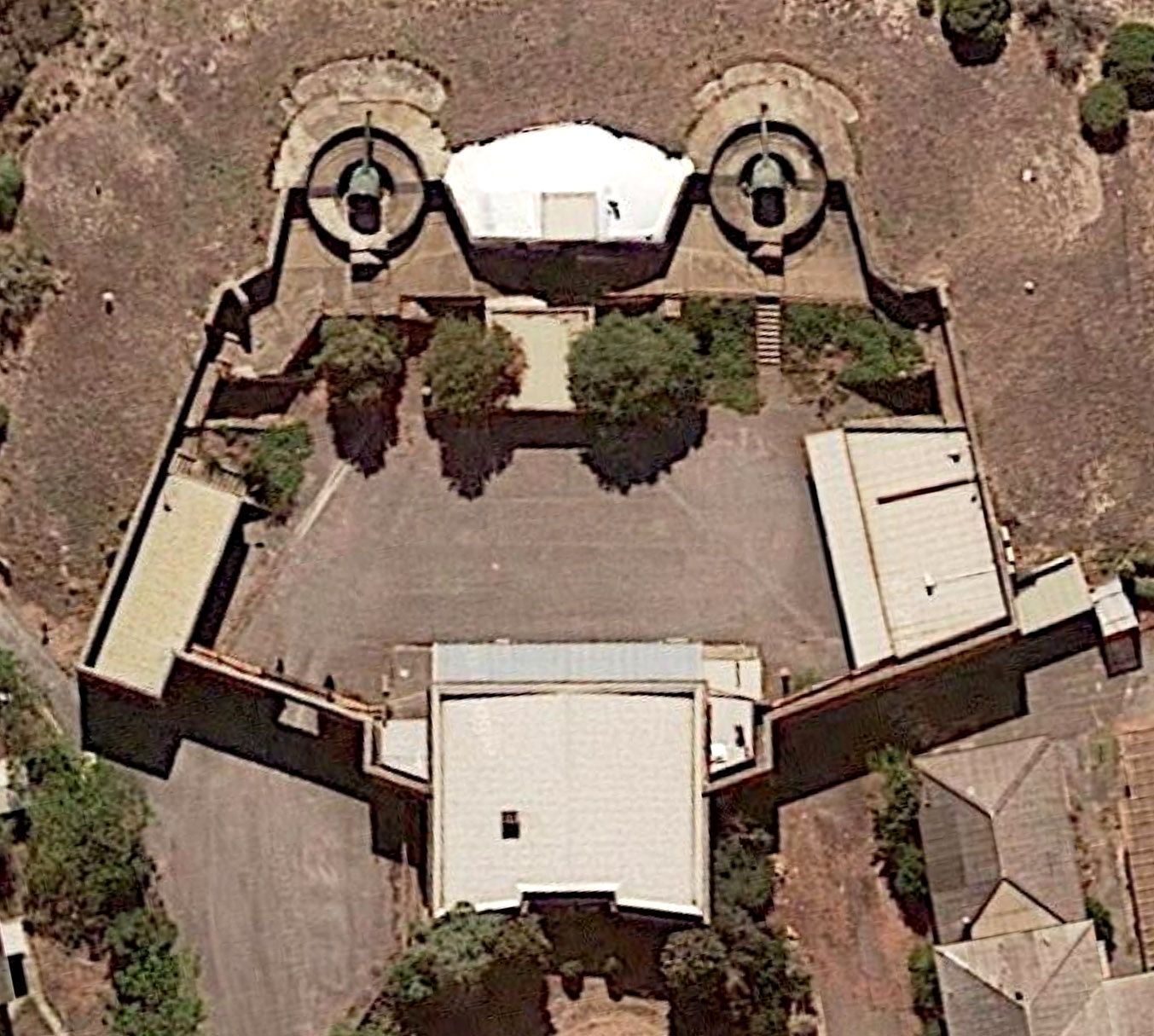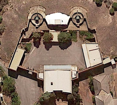 Both Fort Glanville and Fort Largs, of which we'll learn in a bit, certainly seem to have been slammed down on the coast without particular regard for strategy...there are no inlets into Adelaide Harbor in the immediate vicinity, for example. But I do recognize that things probably looked different in the mid-19th century than they do now, that shipping lanes were locally understood and impossible to presently see on Google Maps, and that the folks making siting decisions likely had a handle on things. Probably. A jetty was built at Semaphore in 1860, which did make it South Australia's main point of entry...so, okay, it makes sense as a strategic location. You win, Australia.