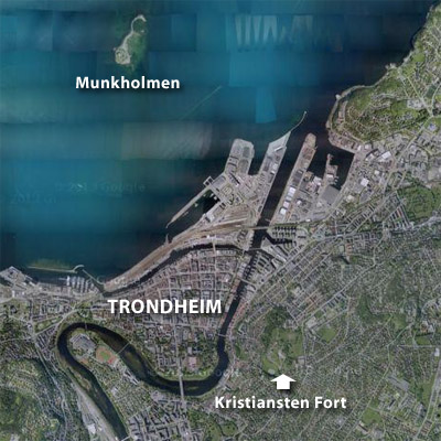 Today, Munkholmen is open for visits from May 20 through September 3rd. Boats out of Trondheim take visitors to the island several times a day: Visit Munkholmen's popular restaurant! See a plaque stating that Peder Schumacher Griffinfeld paced for 18 straight years in his cell, wearing a track into the stone floor which is no longer there! Look over the water at Trondheim and wonder when the boat will take you back! |