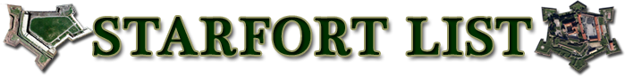 Were you to scroll down this page, or perhaps even just look down a little, you would find an alphabetical list of each and every fort that is represented at Starforts.com. Why an alphabetical list, you may well ask, when there's already a perfectly lovely Gallery page, wherein these starforts are divided up by the nation in which they currently reside? If you're here looking at this alphabetical list, you may well be able to answer your own question. |