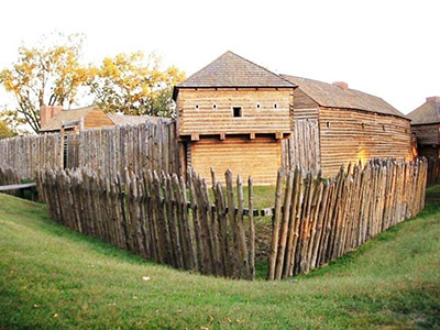The replica Fort Massac. Blockhouses anchor three of its four corners. The fourth corner? Aah, we just don't keep anything important in zat part of ze fort. Let ze English pigdogs have what zey will, n'est-ce pas? |