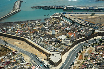 Imagining that their nice new port might one day need to be defended, the French made an effort to mend the crumbling Fortress of Mazagan. Its walls strengthened, most of its ditch filled in and all hints that there had once been a Governor's Bastion eradicated, by the start of the First World War the fortress was, if not a state-of-the-art 20th century artillery fort, at least somewhat ready to defend itself. From 18th century sailing ships.