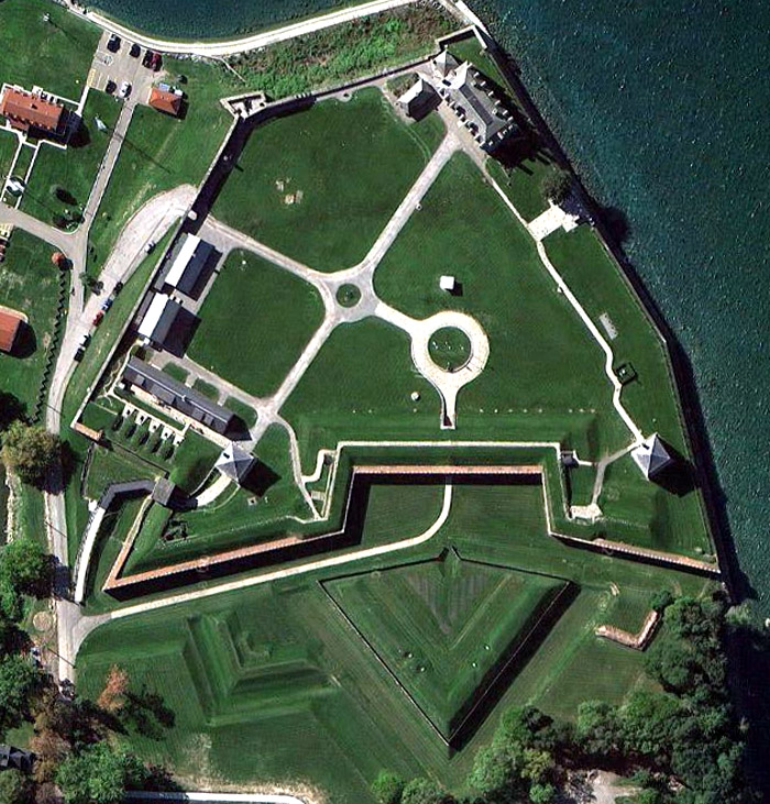 The reinforced, tippy-tip corner of Fort Niagara's southeast bastion. Should you wish to get close enough to this corner to kiss it, as I admittedly do when visiting starforts, you may click here. No judgement. Just starforts. |