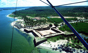 The Dutch found an excellent spot on a little island at the southern end of Itamaracá, commanding the Santa Cruz Canal. Dutch engineer Pieter van Bueren designed and built a wooden, square fort |