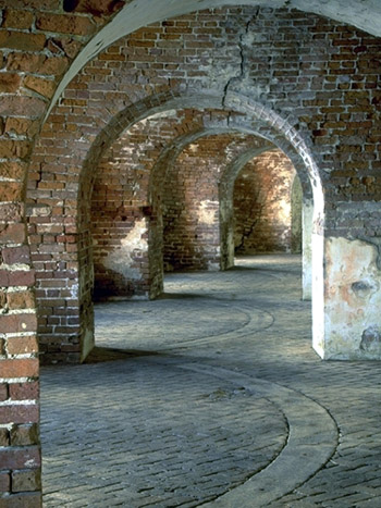 The fort was reopened to visitors in May of 2008, and along came Hurricane Gustav that September. The fort was reopened in June of 2009 and undergoing extensive repairs when...along came Hurricane Isaac in August of 2012. Today, Fort Pike is indefinitely closed, as it has been so damaged by these storms that it's unsafe for visitors, which makes me very unhappy indeed. Recent pictures show enormous cracks in some of the outer walls. And it seems a foregone conclusion that there will be more hurricanes. No cannon was ever fired in anger at Fort Pike, but it served its role admirably, keeping America's foes from New Orleans and supporting various military adventures in the region. One hopes that Louisiana can find the time and money to repair and reopen the fort to tourism, but it seems likely that the major effort will continue to be repairing and reopening New Orleans! 2016 Update: At the present time, Fort Pike is open to visitors on Fridays, from 9am to 5pm. This occurs solely due to the good nature of one heroic Louisiana State Park Ranger, who agreed to be onsite one day per week. I learned of this quite by accident before heading to the Gulf Coast in May of 2016, and was fortunate enough to get there when the fort was open! Please click here to see pictures of my visit to Fort Pike!