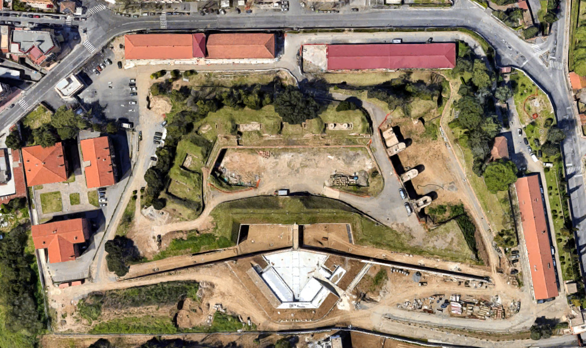 As soon as Italy had wrested Rome from the Pope, there was a perceived threat of the French returning and setting things back as they had been. Was such a threat realistic? France had been comprehensively defeated in the Franco-Prussian War, with Napoleon III imprisoned for a time in Germany, and Prussian troops nestled comfortably in the ring of forts around Paris. The Prussians eventually took everything of value and left, however, and France resumed its usual military thrashing about, particularly in the Scramble for Africa in the early 1880's. Whatever the state of France or its actual intentions, the Italians felt compelled to upgrade Rome's fortifications. Artillery had eclipsed the starfort, however, and the manner in which large cities were defended in the last three decades of the 19th century was with a series of artillery forts. These relatively small, chevron-shaped forts (really little more than fortified batteries) were built in a circle around their city at a distance of two to three kilometers from one other, which was the effective range of the guns they mounted. The forts were mutually supporting, which had been the role of a starfort's bastions. |