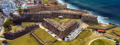 Spain was not, however, the only European power interested in harvesting the New World's riches. England and the Netherlands, in particular, took issue with Spain's position at San Juan, and conducted raids on a regular basis. Spain's King Charles V (1500-1598) ordered the construction of a fortification to defend his rico puerto in 1539, and by 1587 the really quite spectacular Castillo San Felipe del Morro was on duty, repelling the vast majority of Dutch and English thrusts. Some of the attacks on San Juan, while ultimately unsuccessful, wreaked havoc and caused damage to Spain's valuable colony. Further fortification is always the solution! While the Castillo del Morro was a formidable edifice, it was positioned to deter ships from approaching the main channel into the Bajo Trablazo, not to defend the city itself. |