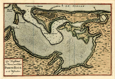 A Dutch map from 1766 reveals San Juan to be well-starforted! The Castillo of our current interest is listed here as the Castillo de la Perla, and a Fort St. Antonio guards El Boquéron, the waterway that swoops around the east of San Juan. And then of course there's the good ole Castillo del Morro. Were these fort names all correct at the time, or were the Dutch just misinformed about 2/3 of them? |