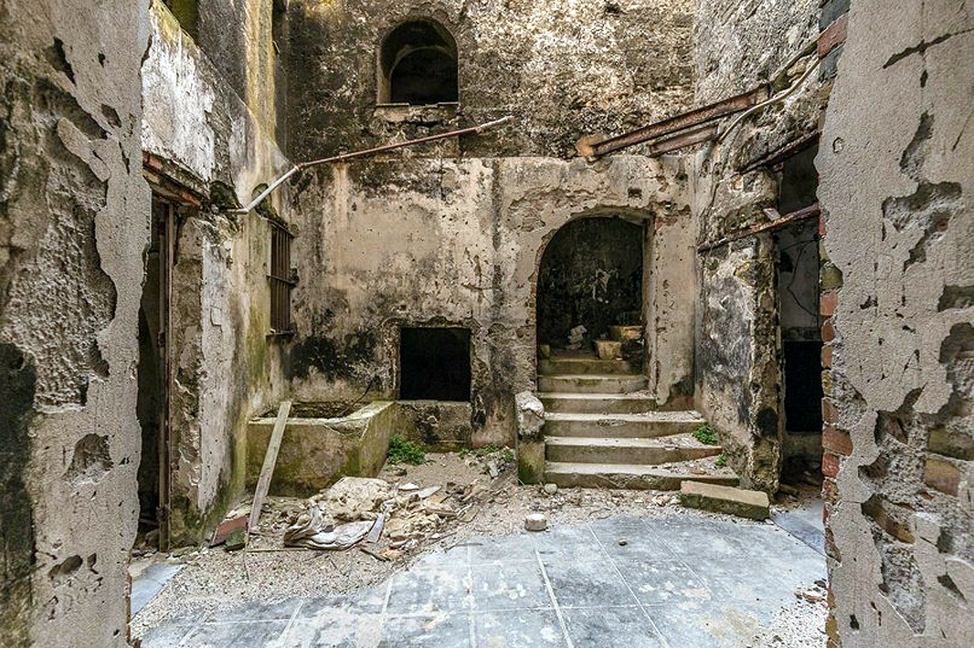 The interior of the Castello San Giacomo, which was utilized as a maximum security prison until 2011. |