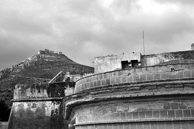 Particularly painful for inmates at the Castillo San Giacomo must have been this view, of the nearby Forte di Santa Caterina. "Why couldn't I have been incarcerated in that cool fort?!" |