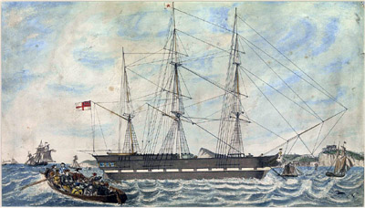 The HMS Clio, in a drawing from 1824. Lauched in 1807, the Clio served in the Baltic during the Napoleonic Wars, participated in the reestablishment of British rule in the Falkland Islands in 1833, and whooped it up in the First Opium War. This was why the sun never set on the British Empire. |