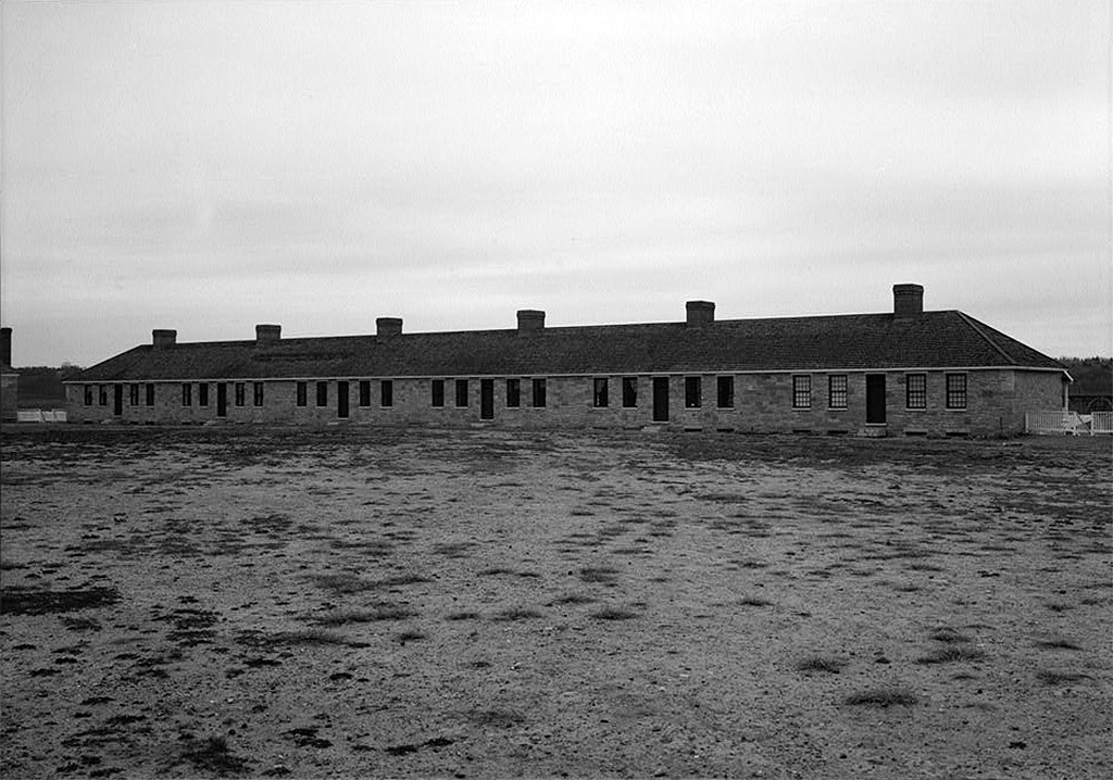 Fort Snelling's Officer's Quarters, sometime after 1933 but before folks knew how to grow grass on a fort's parade ground. |