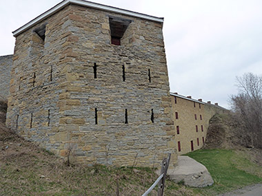 Essentially just three blockhouses connected with a stockade wall, and a fourth blockhouse strangely connected at a distance by a covered way (?!), Fort Madison was poorly sited, and proved unable to effectively defend itself from Indian attacks during the War of 1812. James Madison surely clucked his tongue and shook his head when he learned that his namesake fort was abandoned and burned to the ground in November of 1813.