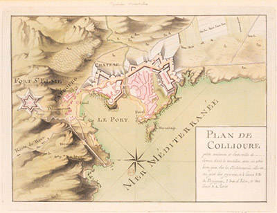 | The heavily fortified town of Collioure as it appeared in the 18th century. |