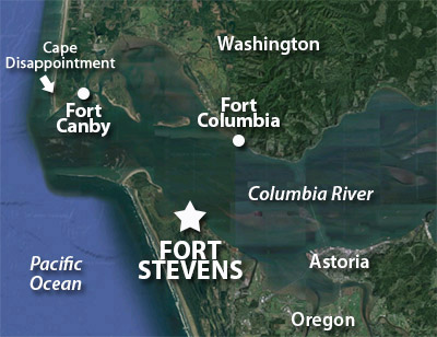 In the 1820's, fur trappers and traders pioneered what would become known as the Oregon Trail, connecting the eastern United States with the wild 'n' wooly Oregon Territory. The city of Portland, at the confluence of the Columbia and Willamette Rivers, was officially founded in 1845, and developed into a major port of the Pacific Northwest. During the Second World War (1939-1945), the shipyards of Portland churned out a steady stream of Liberty Ships, which were enormous cargo vessels...making the mouth of the Columbia River a location in desperate need of defense..