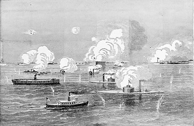 Admiral Du Pont's attack on Fort Sumter, April 7, 1863, from Harper's Pictoral History of the Civil War. |