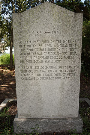 Once the Confederate States of America was officially made an entity in February of 1861, its first priority was to wrest Fort Sumter from the Union. CSA President Jefferson Davis (1808-1889) ordered it so, and in the early morning of April 12, 1861, with US Navy ships hovering impotently nearby, hoping in vain to deliver supplies to Anderson's garrison, every gun that could be dragged to the shore of Charleston Harbor opened fire on Fort Sumter. The first shot, which sent a mortar shell that exploded above Fort Sumter at 4:30am, was fired from Fort Johnson.
