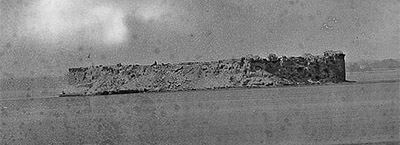 An actual photograph of Fort Sumter in August, 1863, after Federal guns had pounded on it for a bit.