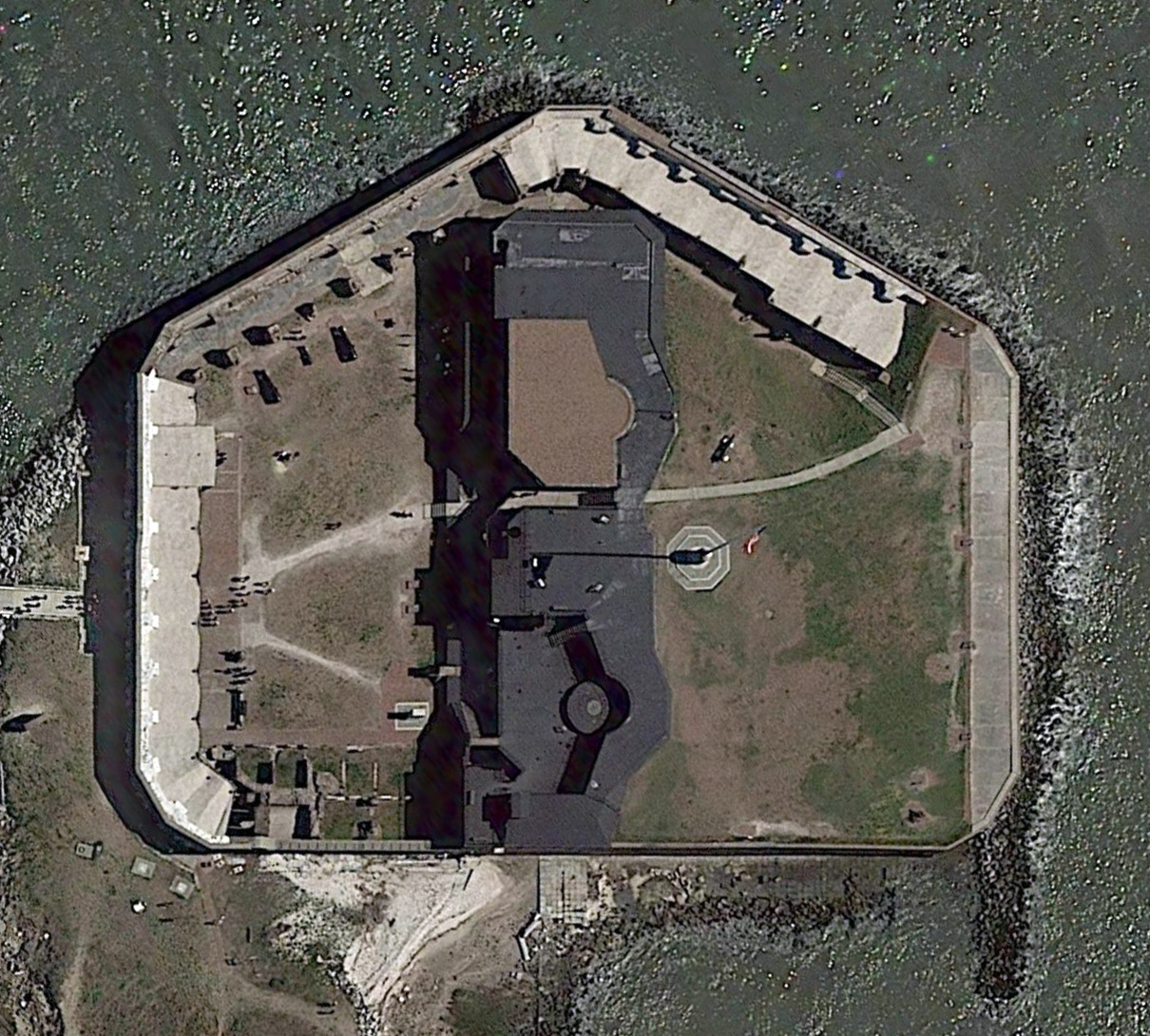 Fort Sumter as seen from Fort Moultrie, April 11 2014. Fort Sumter as seen from Fort Johnson, August 12 2017. |