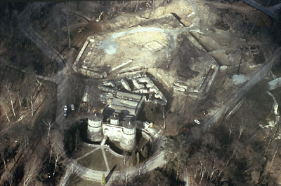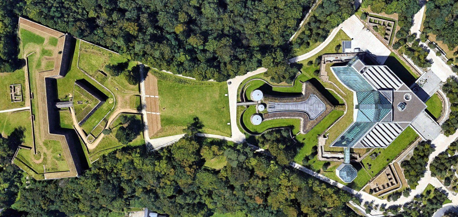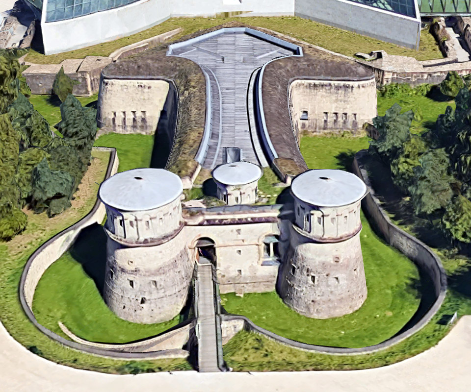 Prior to Fort Thüngen's 1990 restoration, the remains of a big redoubt, called Parc, was still visible in front of our fort. Today that spot is occupied by Luxembourg's Museum of Modern Art. |