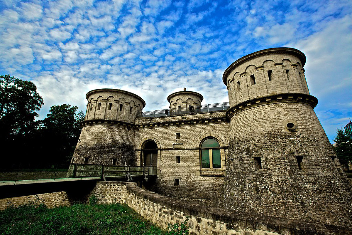 While Fortress Luxembourg's walls, bastions and towers were mostly done away with as per the Treaty of London, much of the network of underground tunnels, casemates and those mysterious "mine chambers" were left intact, because...well, nobody could see them, and they weren't hurting anybody, so why make the effort to fill them in? The passages that had been under Fort Thüngen were rediscovered in the 1980's, and by 1990 the site had been cleared of all that pesky vegetation, for study. Over the next few years Fort Thüngen was rebuilt to its most impressive Prussian-era state, and a museum dedicated to Fortress Luxembourg was opened therein, in the late 90's. Luxembourg's Museum of Modern Art, the Mudam, was built atop the trace of the detached bastion known as Parc that had once loomed so menacingly to Fort Thüngen's northeast at the same time.