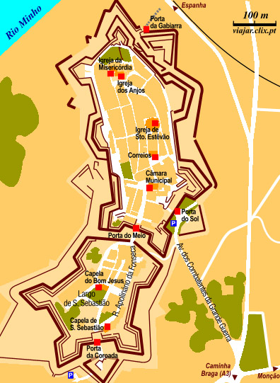Portuguese King Afonso III (1210-1279), an enthusiastic proponent of eradicating Moors from his lands (as well he should have been), bestowed the much more pleasant-sounding name of Valença on the town of our current interest in the mid-13th century. |